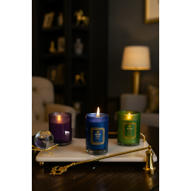 Nazar Boncuğu Motifli Cam Mum - 800 Gr. Mum - Damla Nazar Boncuğu Altın & Mavi Dekor